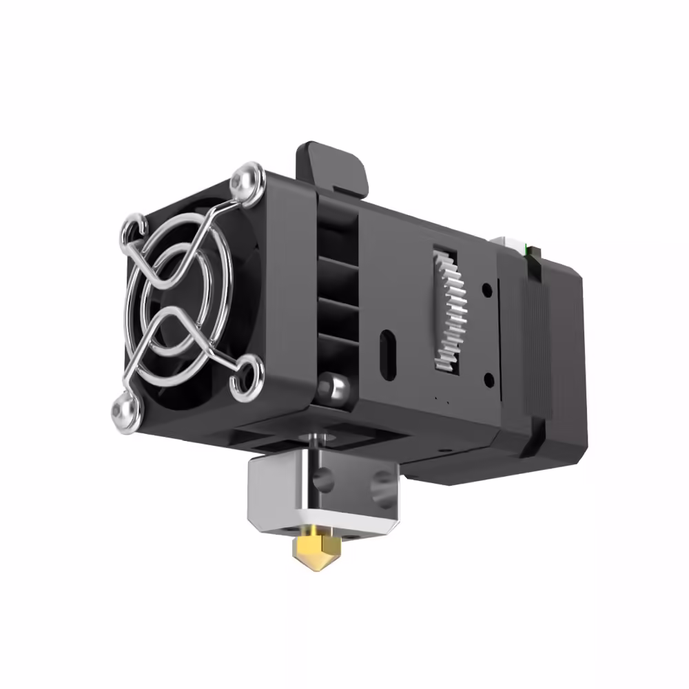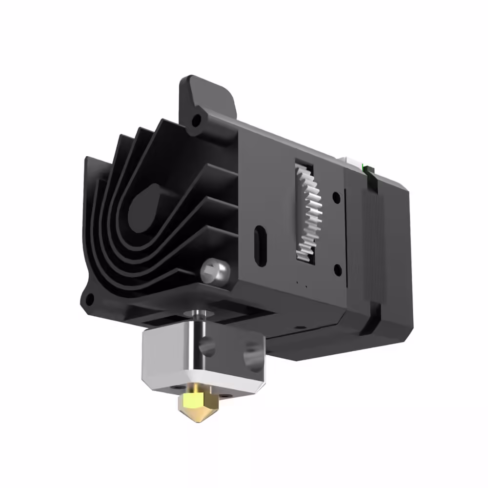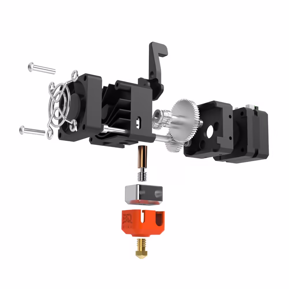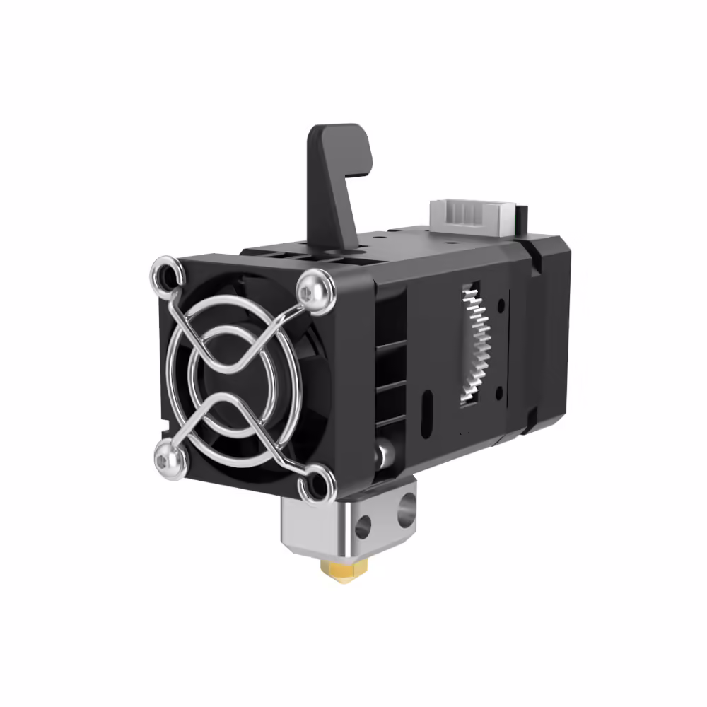 Dzięki precyzyjnym stalowym kołom zębatym i tytanowo-miedzianemu stopowi, ekstruder charakteryzuje się długą żywotnością i minimalnym ryzykiem zużycia. Zastosowany system podwójnego docisku zapewnia płynne i niezawodne podawanie filamentu, co eliminuje ryzyko jego ślizgania się lub zacięć.