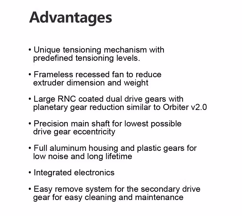 Smart Orbiter V3.0 to innowacyjny ekstruder typu Dual Drive, zaprojektowany z myślą o precyzyjnej wydajności druku 3D. Dzięki zintegrowanej elektronice i zoptymalizowanej konstrukcji, jest to ekstruder, który łączy nowoczesne technologie z lekkością i łatwością konserwacji. Smart Orbiter V3.0 to następca popularnego modelu V2.0, z licznymi usprawnieniami, które zapewniają jeszcze wyższą precyzję, mniejsze straty ciepła i lepszą efektywność. Ważący tylko 175 g, ekstruder minimalizuje wpływ na wagę drukarki, co przyczynia się do szybszych i bardziej precyzyjnych wydruków.