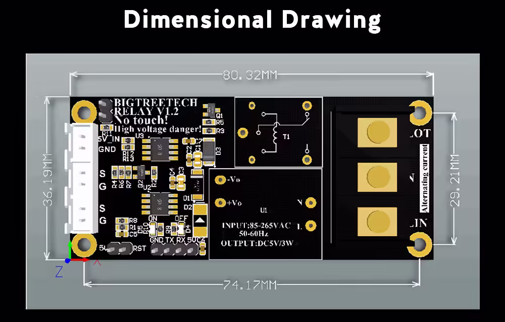 BIGTREETECH Relay V1.2 to zaawansowany moduł automatycznego wyłączania, zaprojektowany z myślą o użytkownikach drukarek 3D i innych urządzeń elektronicznych. Jego głównym celem jest automatyczne odcięcie zasilania po zakończeniu procesu drukowania, co przyczynia się do oszczędności energii oraz zwiększenia bezpieczeństwa użytkowania.