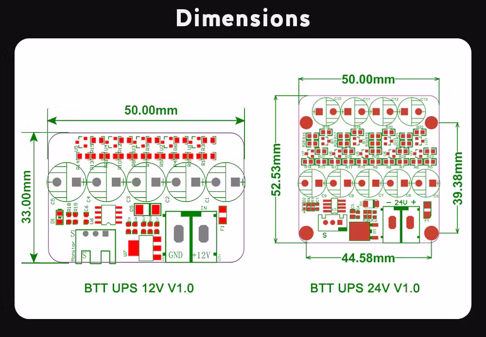 BIGTREETECH UPS 24V V1.0 to moduł zaprojektowany w celu wykrywania awarii zasilania podczas drukowania 3D, umożliwiający wznowienie pracy po przywróceniu zasilania.