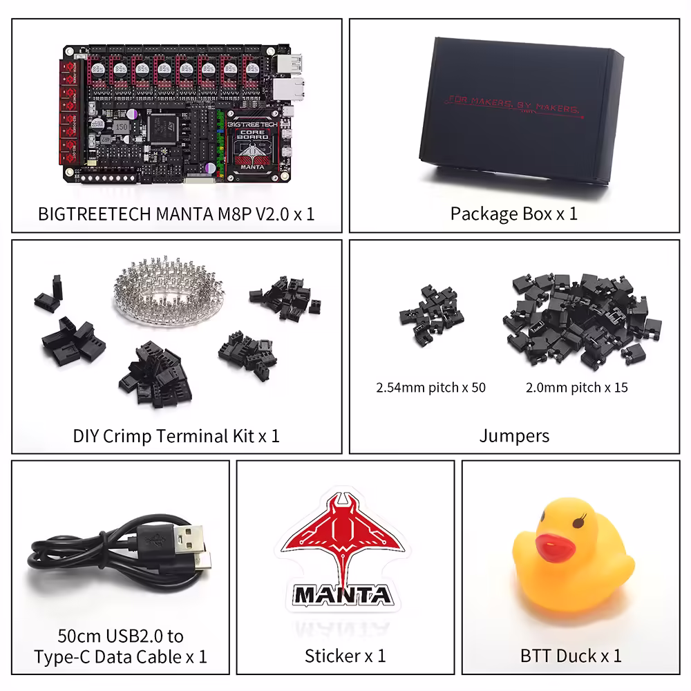 Dzięki solidnej konstrukcji, wsparciu dla oprogramowania open source oraz bogatym możliwościom rozbudowy, BIGTREETECH Manta M8P V2.0 stanowi doskonały wybór dla użytkowników poszukujących niezawodnej i wszechstronnej płyty głównej do swoich projektów druku 3D.