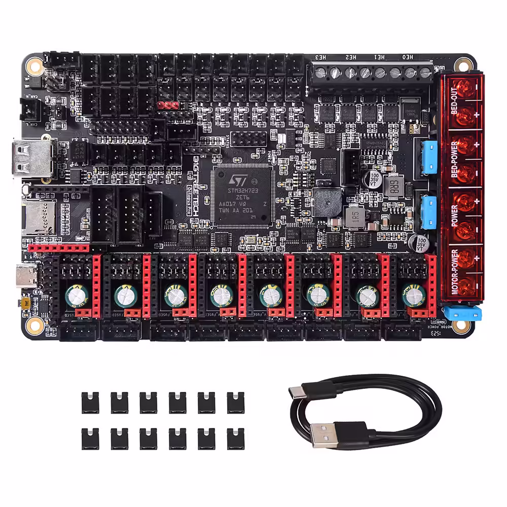Płyta wyposażona jest w 32-bitowy procesor ARM Cortex-M7 STM32F446ZET6 o taktowaniu do 180 MHz, zapewniający wysoką wydajność i stabilność działania. Octopus Pro(H723) jest kompatybilna z firmware Klipper, RepRap i Marlin, a także wspiera integrację z Raspberry Pi i Octoprint, co zwiększa jej wszechstronność w różnych projektach druku 3D.