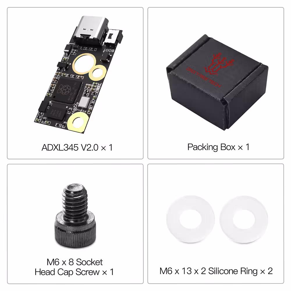 ADXL345 V2.0.1 jest kompatybilny z oprogramowaniem Klipper i może być łatwo podłączony do płyty głównej drukarki 3D za pomocą standardowego kabla USB-A do USB-C. Dzięki kompaktowej konstrukcji i prostemu montażowi, moduł ten stanowi doskonałe rozwiązanie dla użytkowników chcących poprawić jakość wydruków poprzez efektywną kompensację drgań.