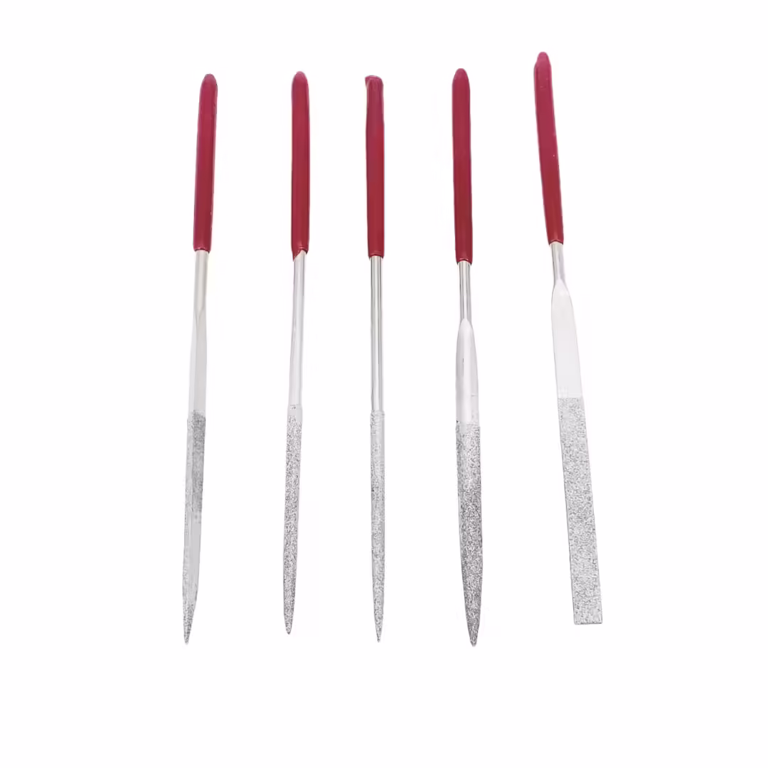 W skład zestawu wchodzi 5 pilników o różnych kształtach i gradacjach, takich jak prostokątne, okrągłe, półokrągłe, co zapewnia wszechstronność w zastosowaniu. Dzięki różnym gradacjom, pilniki doskonale sprawdzają się przy szlifowaniu i wygładzaniu powierzchni.